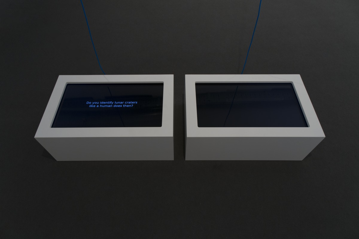 To address these questions, in Counting Craters on the Moon, Kyriaki Goni purposely turns her gaze to a distant and uncanny territory: the Moon and its surface. The Moon, according to the artist, constitutes a fascinating example and offers an interesting analogy. Lacking an atmosphere, it operates as a data center which stores in its body the memory of our solar system and allows predictions for the future. The project presents an imaginary encounter between astronomer Johann Friedrich Julius Schmidt (1825–1884) and the neural network DeepMoon, both of which set out to count the craters on the moon. Speculating upon the possible synergies between human and machine, the artist invites us to imagine how we can learn from and with machines in order to build different, multiple and, possibly, collective understandings of the surrounding world and its cosmos.