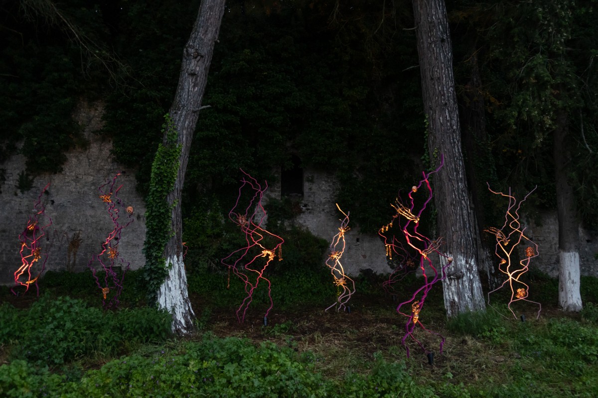 Running from June 16 to July 9, Plásmata II comprises a large exhibition of digital works by Greek and international artists on the city's lakeside route, as well as concerts and DJ sets, workshops, discussions, educational programs, guided tours, and Movement Radio, Stegi's 24-hour online radio station that compiles a deeply local, and therefore genuinely global, program. In Ioannina, Plásmata proposes new itineraries and symbioses at the boundary of the city and Lake Pamvotida, broadening the dialogue between the material and immaterial, the center and the periphery, the past and the future. Plásmata invites us not to see the artworks of the exhibition merely, but also to stop at 29 spots along the exhibition's route and discover the natural objects and sculptures already in place there, to observe our city briefly and, ultimately, our very selves, to seek our origins, and dream on our future.
